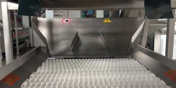 Das mechanische Rollen-Sortiersystem arbeitet vollautomatisch und kann direkt unter der Abbeermaschine platziert und auch steuerungstechnisch integriert werden, um ein optimales Zusammenspiel zu garantieren.