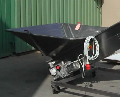 Der Aufnahmetrichter ist individuell in verschiedenen Dimensionen umsetzbar und kann somit ideal auf die beabsichtigte Form der Beschickung (per Kisten, Kipper oder direkt aus einer Übernahmewanne) abgestimmt werden. Die Mindesthöhe des Trichters beträgt 400 mm.